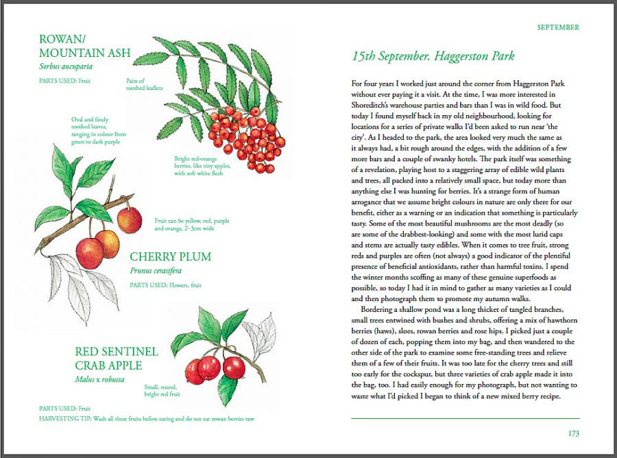 I’m delighted to say that the publication date for my book – The Edible City: A Year of Wild Food – is now set for September 8th and there will be two launch events, one for the press on September 13th and a less formal do at Stoke Newington Books (London N16) on September 29th. This second event is open to all but it’s invite only, so if you’d like to come then please drop me an email to [email protected] and I will put you on the list. The Edible City contains sixty short essays about foraging, sixty recipes and sixty beautiful hand painted illustration, I’m very excited it’s finally happening and a little nervous too. I imagine I will be doing quite a bit of press and radio in the next few weeks and in the meantime I have made this very short film about the book and below are a couple of pages so you can get an idea of how it looks. https://www.facebook.com/ForageLondon/videos/1168425559880401/