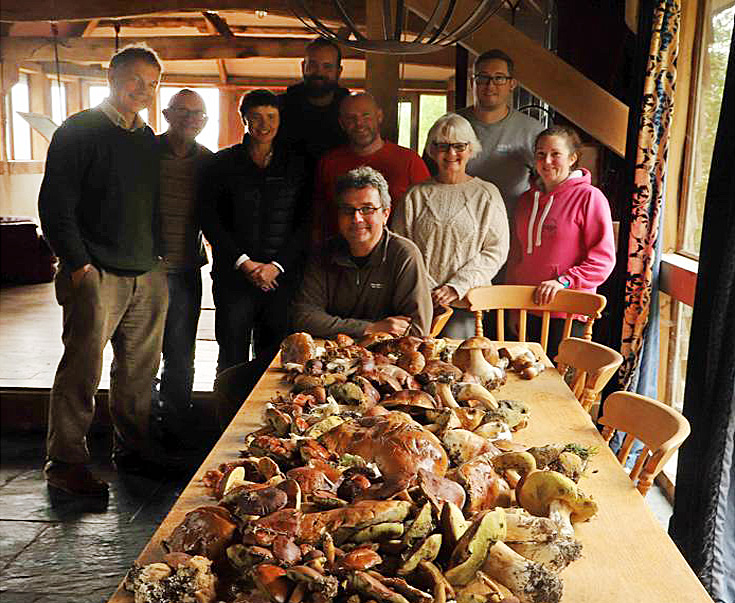 John has very kindly invited me to contribute a guest blog. I am a fellow foraging guide who is based in Mid-Wales. Almost all of my forays are in the vast conifer plantations scattered along the Cambrian Mountains. I am lucky in that no one seems to want to restrict mushroom picking here. This is entirely sensible. The local forestry managers appreciate that harvesting the fruiting bodies we know as mushrooms, has no impact on future crops appearing. Also, there is effectively no competition for something which most people regard as ‘toadstools’. And finally, as these plantations will shortly be cut down, clear-felled to produce timber, this will totally destroy the buried mycelia, the organisms which produce the fruiting bodies.